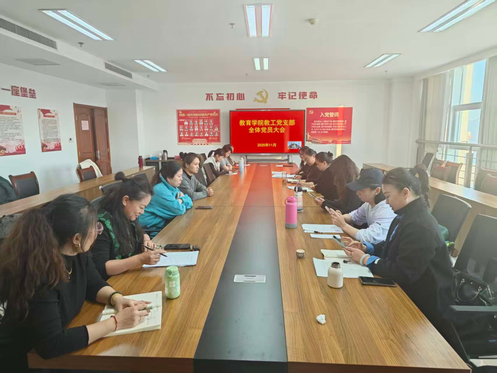 接着,教工支部接收预备党员大会顺利召开。发展对象汇报了对党的认识、入党动机、个人履历及思想工作表现,入党介绍人分别介绍了培养考察情况,支部委员会报告了对发展对象的审查结果与群众意见征求情况。与会党员充分讨论并发表意见,经无记名投票表决,大会一致同意接收相关同志为中共预备党员。新发展党员郑重表态,将以党员标准严格要求自己,在教学科研与服务师生中发挥先锋模范作用,以实际行动践行入党誓言。